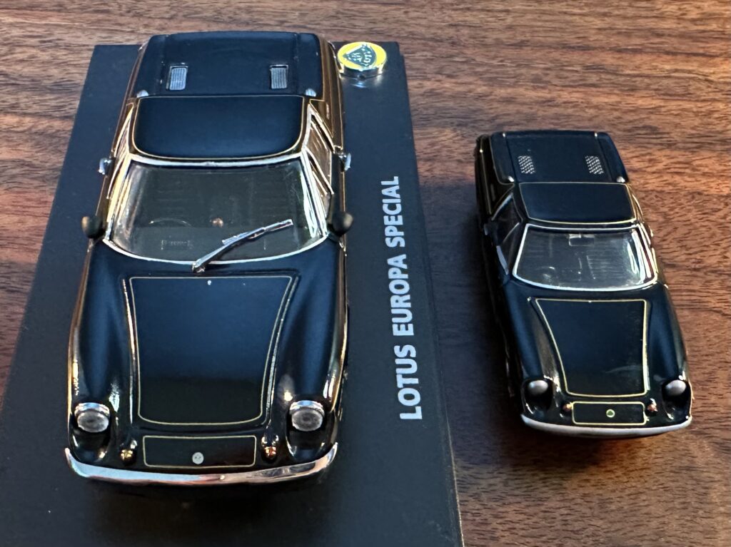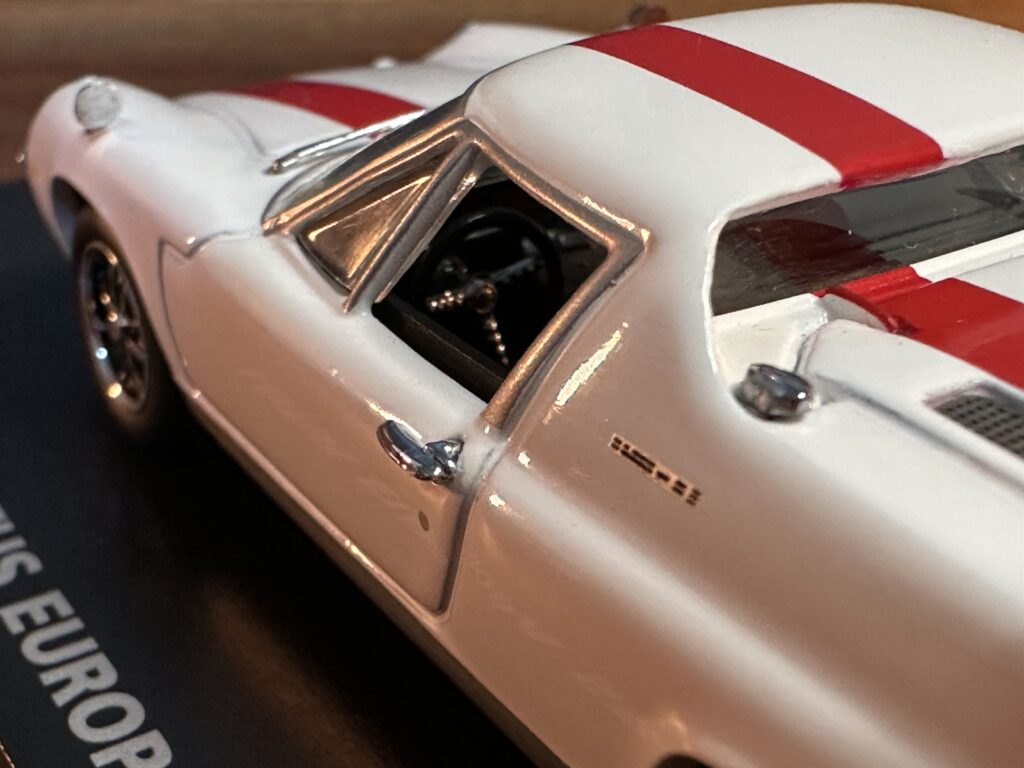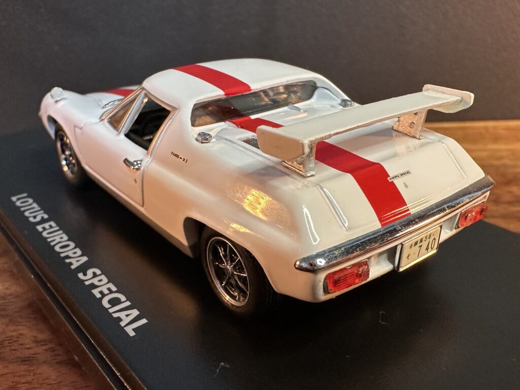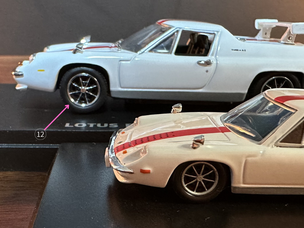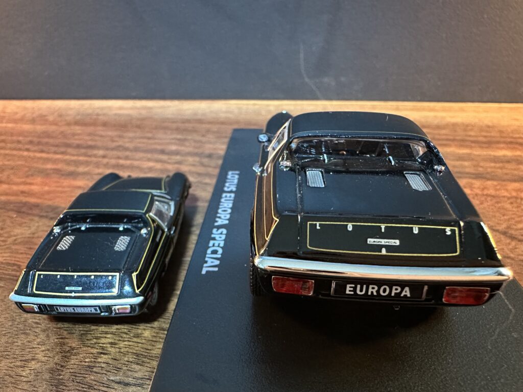 19 リア エンブレム: 両方ともスクリプトバッジのEUROPA SPECIAL、1/64は加えてLOTUSのレターエンブレムがあります(1/43では、なぜ再現しなかったのだろう?)。