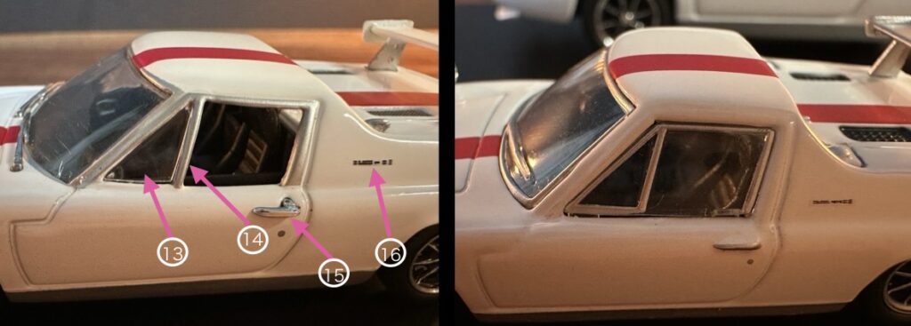 13 三角窓: 1/43は別パーツになっています。